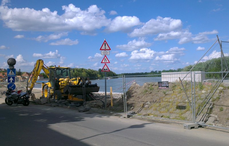 Szentendrei mobilgát építése a bontástól - itt pont bontanak - az ország első mobilgátjának premierje - fotó: ma.hu