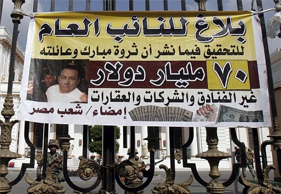 Katonák őrködnek a kairói parlament előtt 2011. február 9-én, amikor a Hoszni Mubarak egyiptomi elnök lemondását követelő tüntetők először terjesztették ki megmozdulásukat a Tahrír téren kívülre.