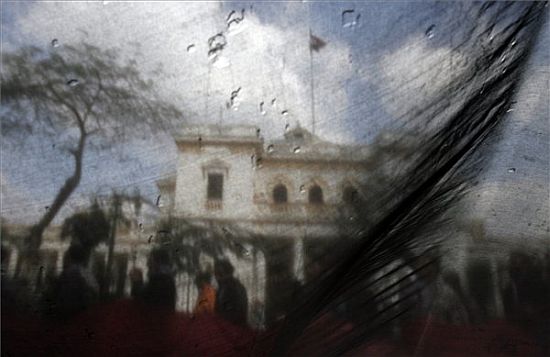 Kormányellenes tüntetők nemzeti zászlój amögött látható a kairói parlament 2011. február 9-én - Forrás: MTI