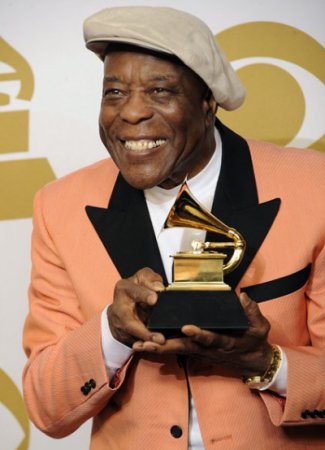 Buddy Guy amerikai bluesgitáros és -énekes a gramofonszobrocskáját fogja - Fotó: MTI