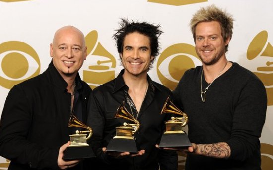 Jimmy Stafford, Patrick Monahan és Scott Underwood, a Train amerikai zenekar tagjai - Fotó: MTI