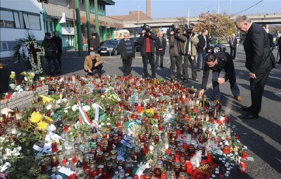 Schmitt Pál mécsest gyújt az FTC székháza előtt - Fotó: MTI