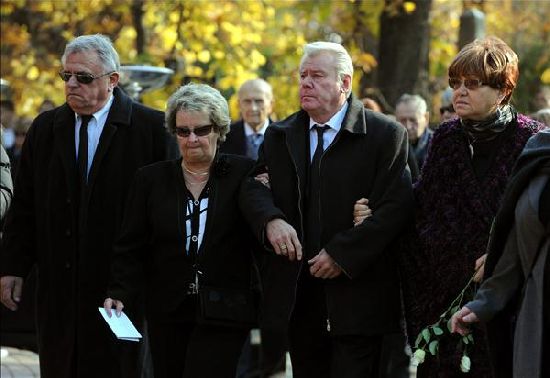 Mészöly Kálmán válogatott labdarúgó, a magyar labdarúgó-válogatott volt szövetségi kapitánya (b), Szűcs Lajos válogatott labdarúgó (j2) és felesége Pécsi Ildikó színművésznő (j)