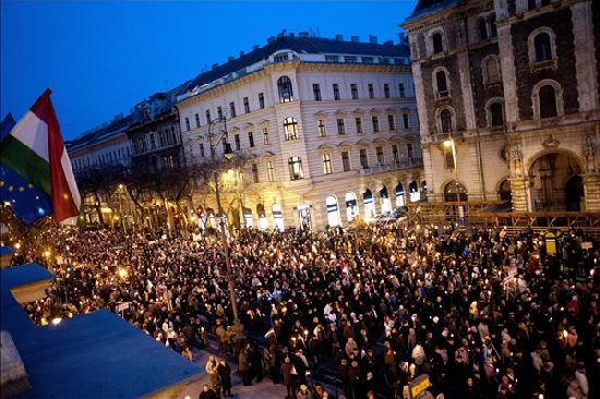 Demonstráció - Békemenet Magyarországért - Fotó: MTI, 2012.01.21.