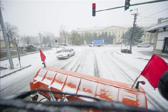 Időjárás - Havazás Békés megyében - Fotó: MTI, 2012.02.03.